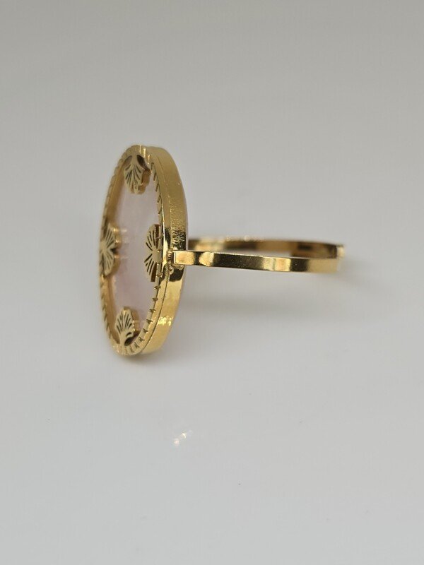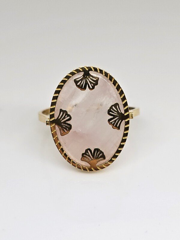 Apportez une touche de poésie à votre style avec la bague GINKO . Ce modèle en acier inoxydable doré, raffiné et délicat, met en valeur une pierre ovale de Quartz Rose, d’une rose poudrée transparente. La monture, ornée de quatre fines feuilles de ginkgo biloba, entoure la pierre avec grâce et évoque la légèreté et la beauté intemporelle de la nature 🌸. Sa couleur douce et apaisante fait de cette bague un symbole de tendresse et d’harmonie véritable, idéale pour celles qui recherchent un bijou empreint de féminité et de romantisme.